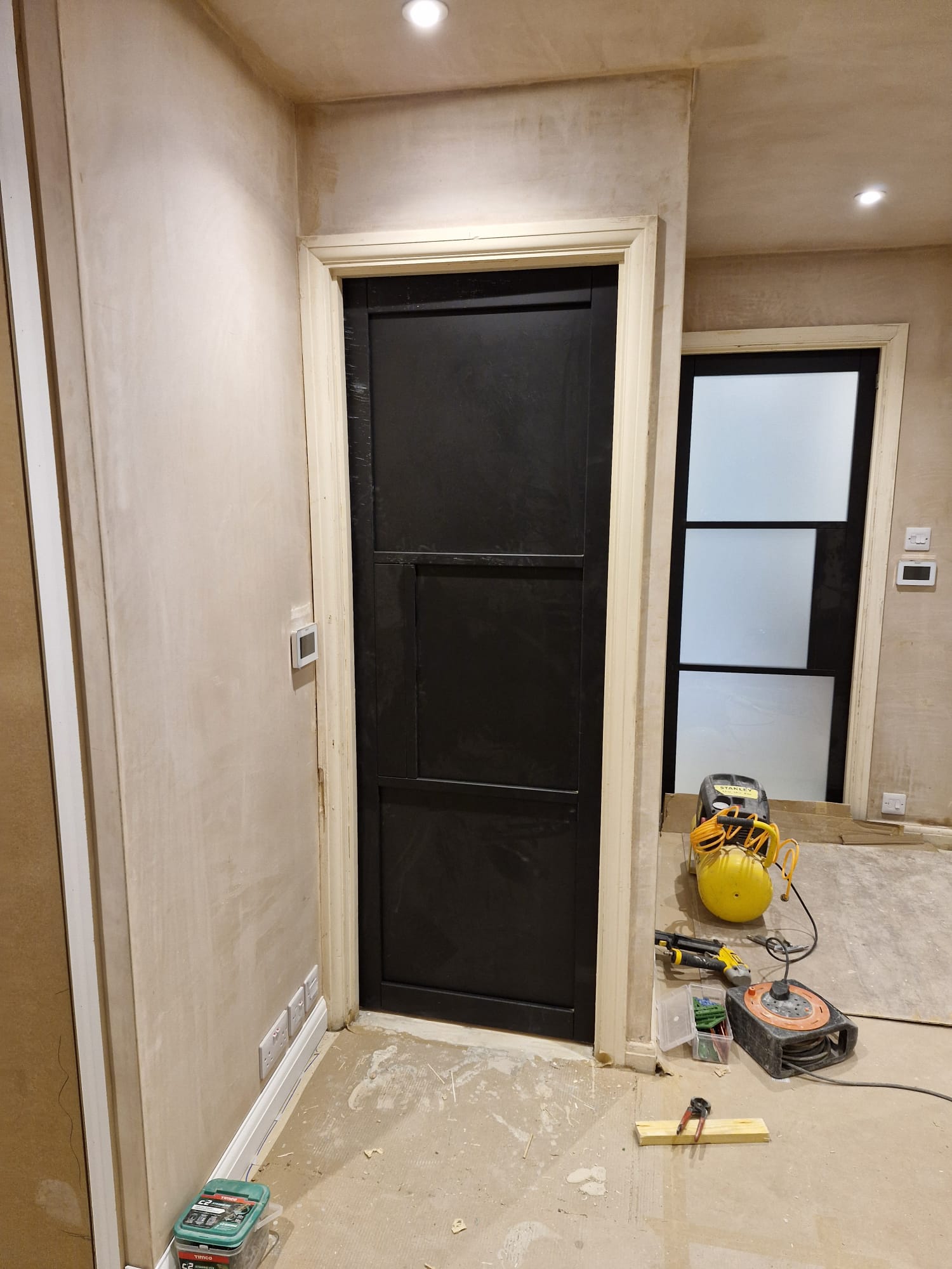 Our expert team provides a full service in door frame and door installation whether it is a lightweight 35mm thick internal budget range door in domestic setting or a 44mm thick solid or fire check door in a commercial building. Bear in mind all fire doors come with their own certification we do not supply a certification for fitting fire doors as we are a competent installer with many years experience if you require certification for the fitting side we can use a third party certification scheme, only in commercial premises. This would have to be pre arranged well before the project is due to start as a lot of planning and regulations need to be applied to assure a smooth process.